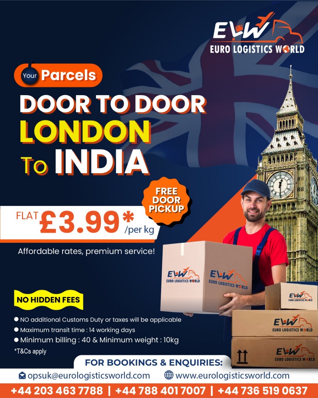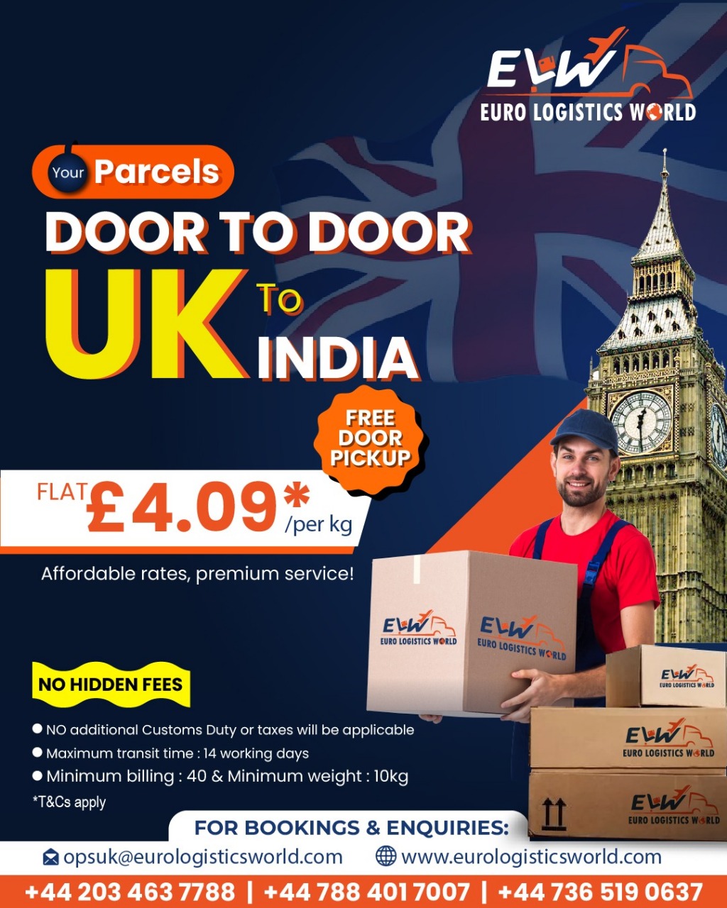 The following contractual terms and conditions ("the Terms") apply to the door-to-door all-inclusive parcel service ("the Service") provided from the United Kingdom to India by EURO LOGISTICS WORLD LTD (ELW) ("the Company"). By accessing and using the Service, you ("the Shipper") are agreeing to comply with these Terms.